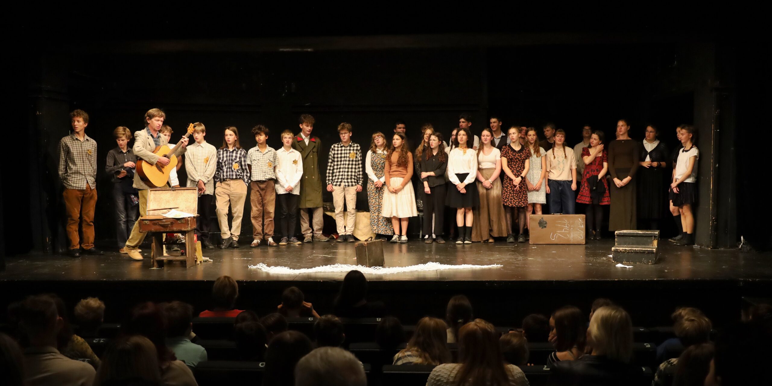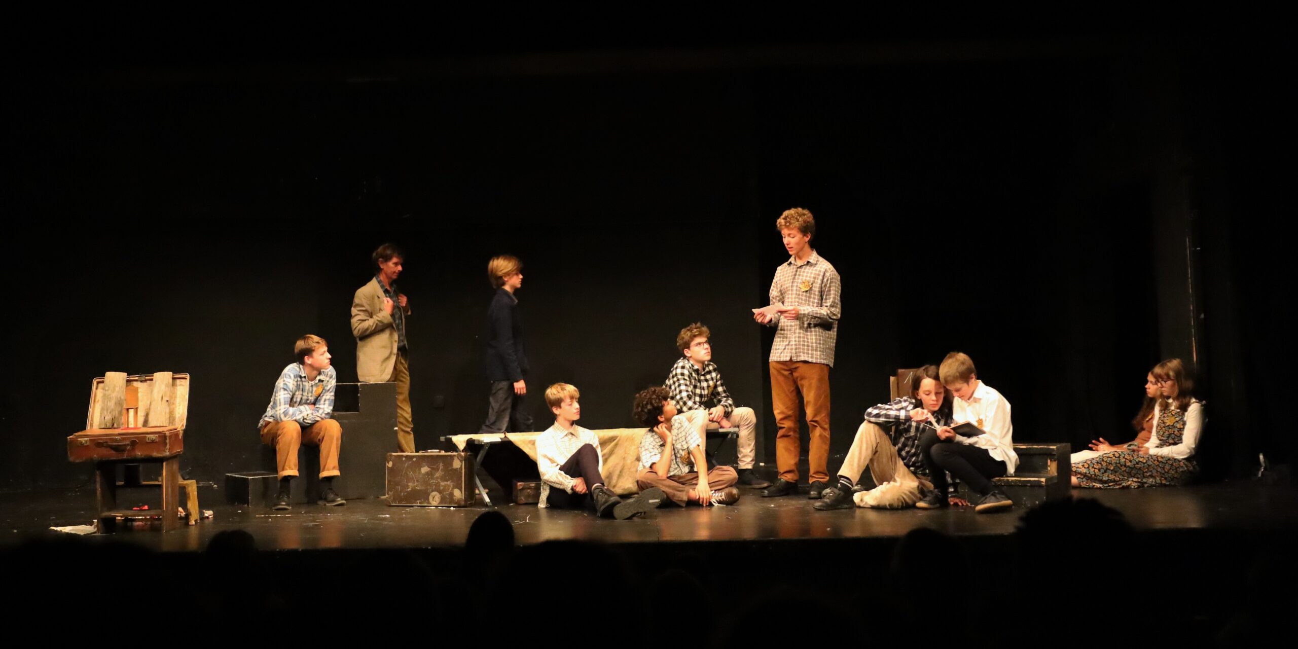 Po představení zaplnili studenti jeviště i hlediště a společně diskutovali o hledání témat, úskalích realizace a jejich divadelní zkušenosti.